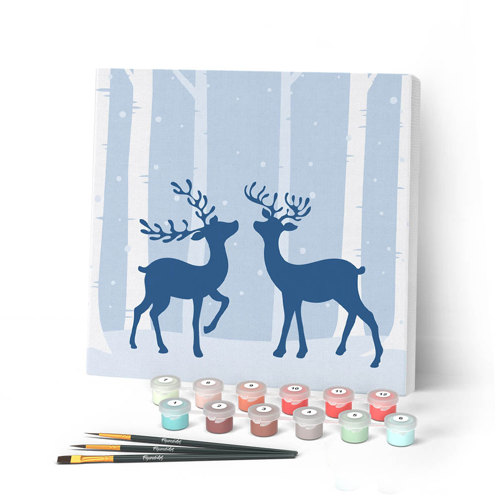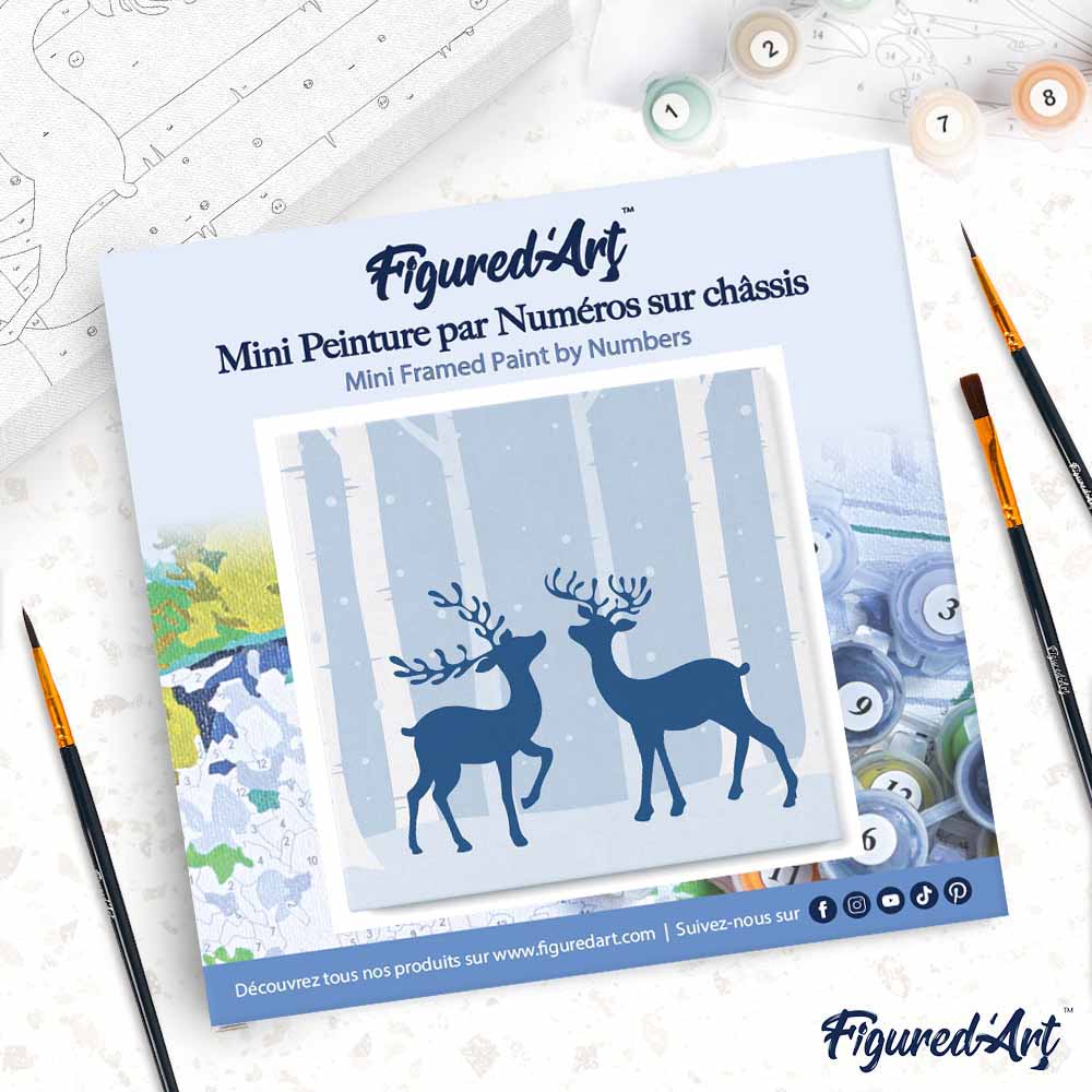 Modèle : Mini Peinture par Numéros 20x20cm avec cadre Rencontre de Cerfs