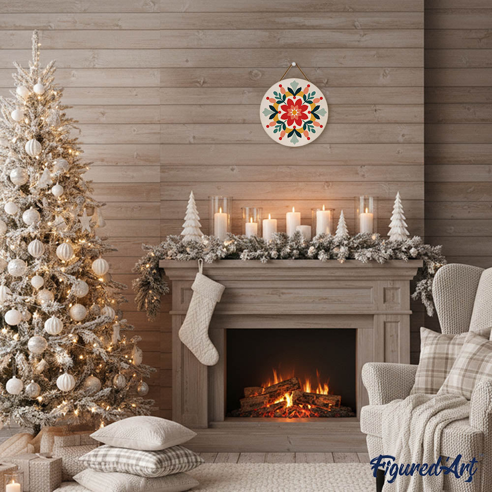 Peinture par Numéro sur Disque en Bois - Mandala Hivernal