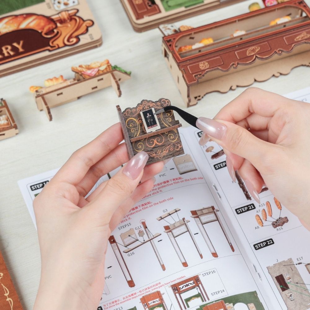 En ouvrant le coffret, vous découvrirez tout le nécessaire pour construire une maison miniature en toute simplicité : pièces finement découpées, petites décorations à assembler, ainsi que des touches de couleur et de texture qui vous guideront dans la création d'un univers cohérent. Ce processus minutieux, mais accessible, transforme une activité créative en un moment de calme, presque méditatif, où l'on voit peu à peu naître un petit monde sous ses doigts.
