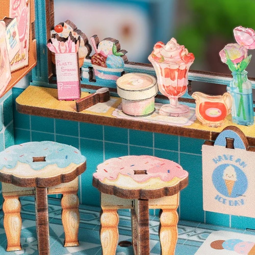 Les Glaces de Bella capturent la joie d'un après-midi d'été en miniature. Nichée au coin d'une rue lumineuse, cette maison miniature reproduit la douceur des glaces colorées et des moments joyeux. Chaque détail, des cornets aux petits accessoires, cette miniature vivante et festive.. Avec ce kit, vous pouvez construire une maison miniature pleine de fraîcheur et de gaieté, parfaite pour égayer vos étagères.