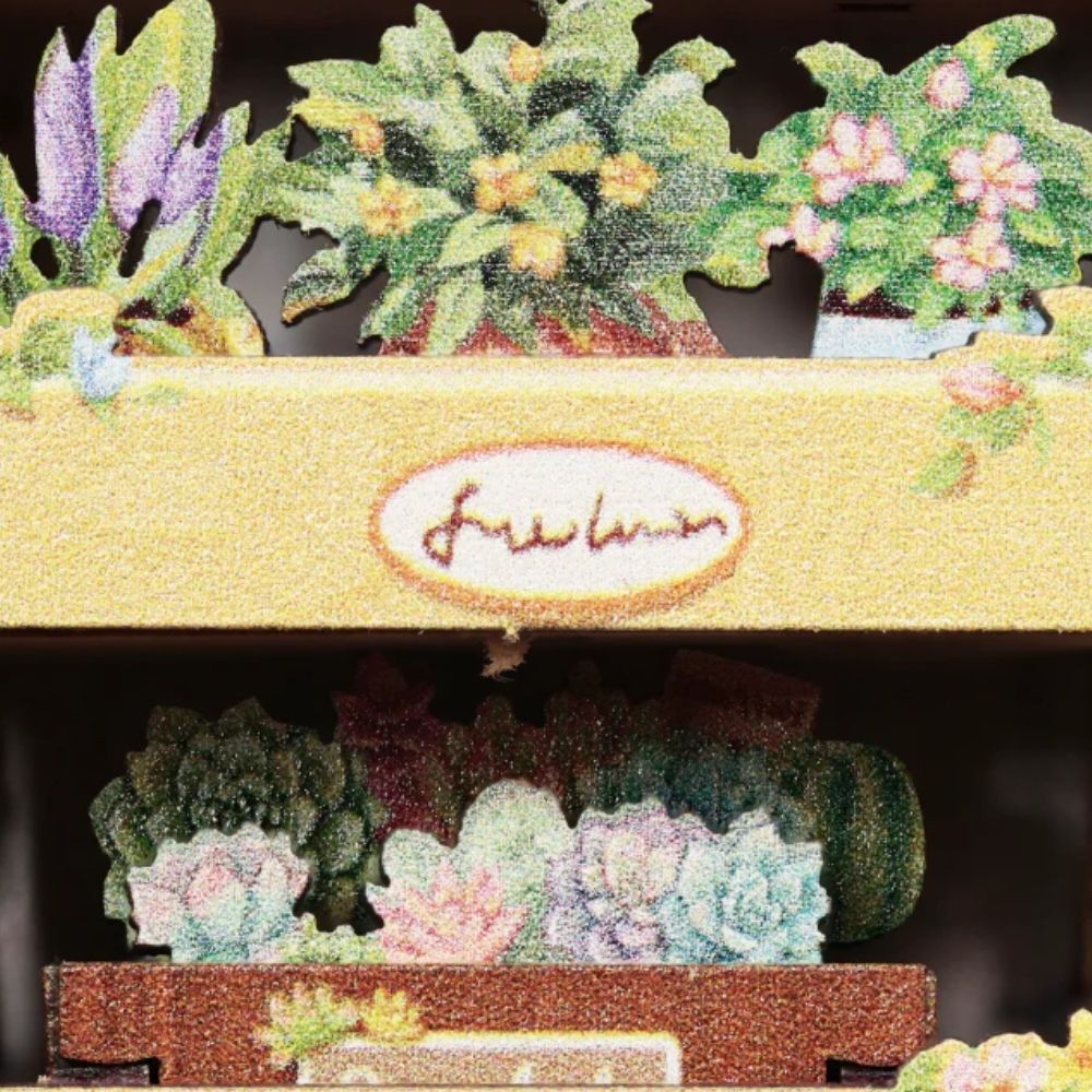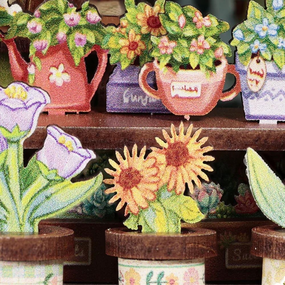 Les Iris d'Anna est un véritable havre floral miniature, où chaque coin respire la sérénité d'un après-midi d'été doux et lumineux. Baigné d'une lumière délicate et enveloppé de tons pastel, ce kit vous permet de construire une maison miniature remplie de fleurs délicates, de paniers débordant de pétales et de petites enseignes peintes à la main. Chaque détail, des feuilles minutieusement disposées aux vases miniatures, enrichit ce diorama d'une atmosphère paisible et poétique. Il offre une escapade tranquille où beauté et douceur s'invitent sur votre étagère ou votre vitrine, apportant un charme naturel et apaisant à votre intérieur.