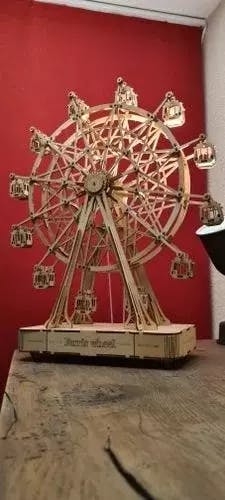 C'est une boîte à musique DIY Grande roue qui peut détendre votre esprit et votre âme. Elle a une allure magnifiquement conçue avec la douce mélodie "Le tour du monde en 80 jours". Ce puzzle en bois est un cadeau unique pour les amateurs de DIY ou pour toute occasion spéciale. Facile à assembler avec beaucoup de plaisir !