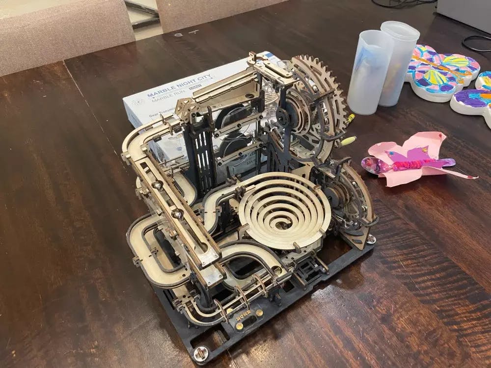 Le Puzzle 3D Ville de Nuit en Marbre est une combinaison de science et de machines, un parcours de billes qui propose une course folle de billes le long des pistes. Ce modèle en bois auto-assemblé, avec sa longue piste de 2,5 mètres et son matériau acrylique transparent, est parfait pour une expérience créative de précision mécanique.