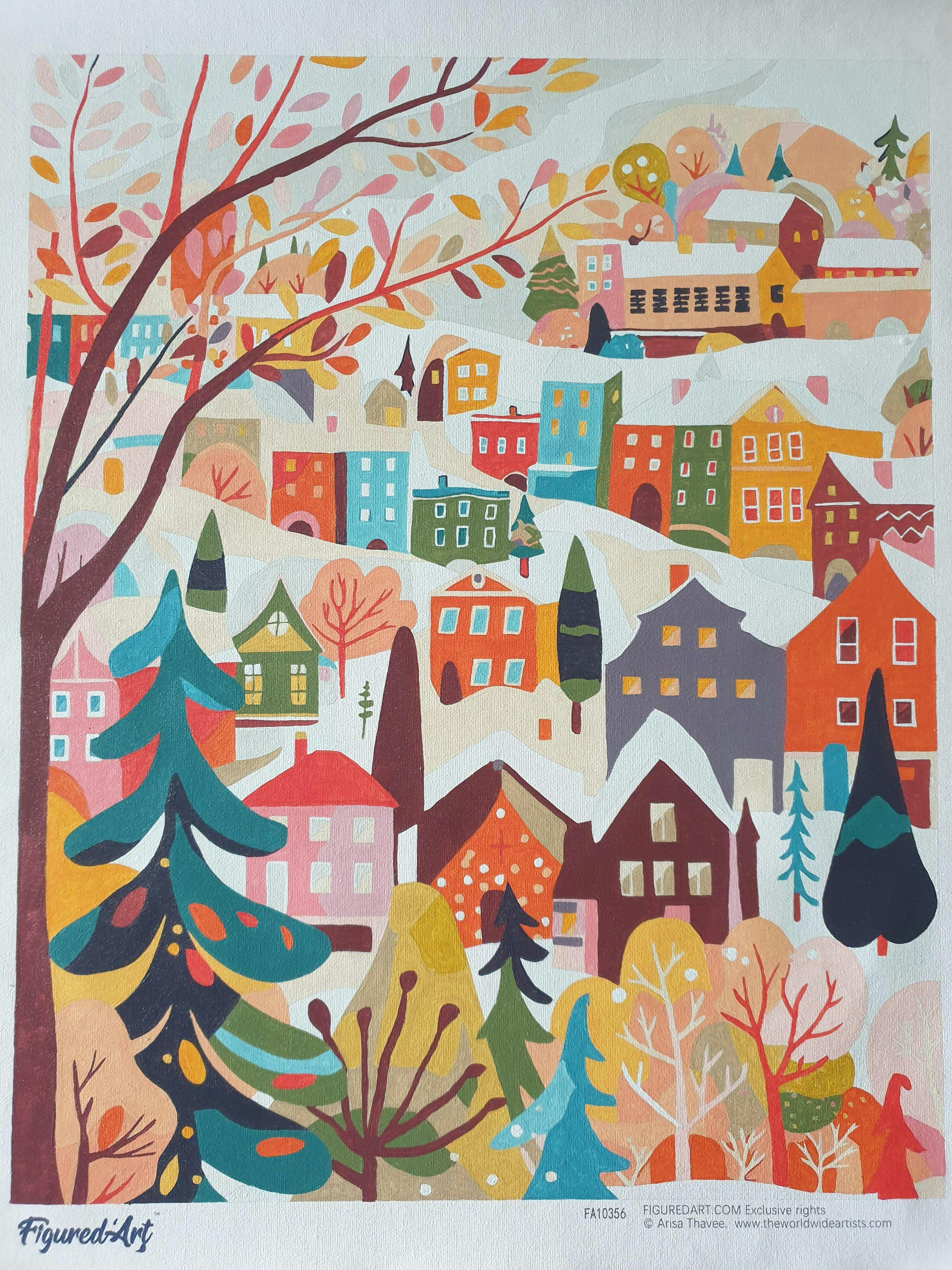 Peinture par numéros Figured'Art Village Hivernal Coloré