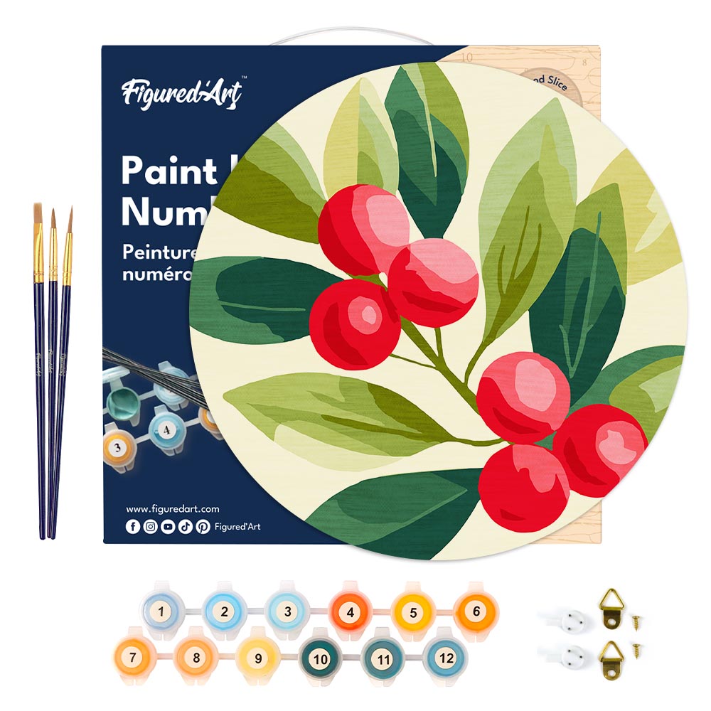 Modèle : Peinture par Numéro sur Disque en Bois - Canneberges