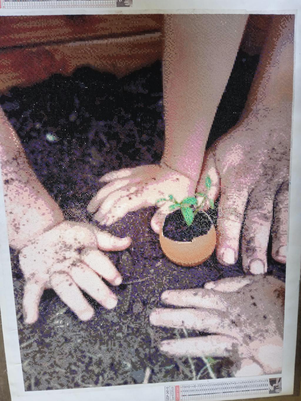 4) Une fois votre broderie terminée, appuyez légèrement sur les diamants avec votre main ou un livre afin de s'assurer de leur maintien final sur la toile.