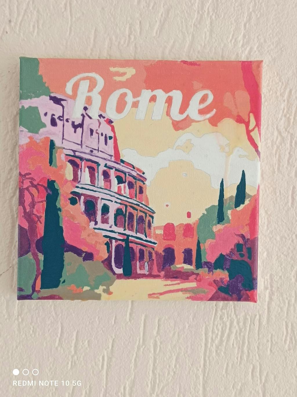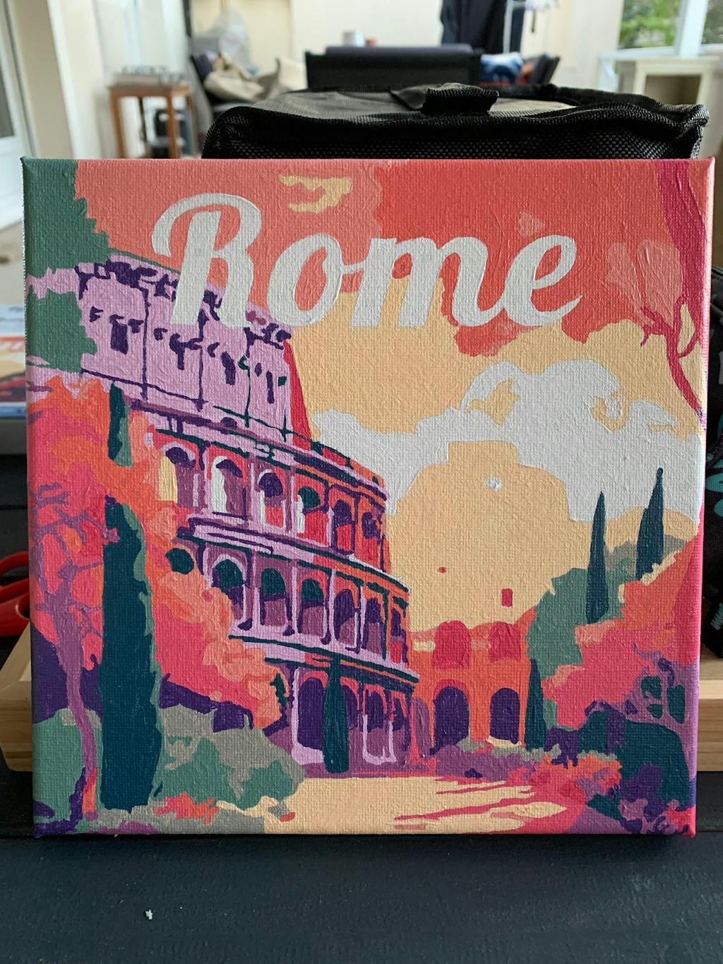 Modèle : Mini Peinture par Numéros 20x20cm avec cadre Colisée de Rome