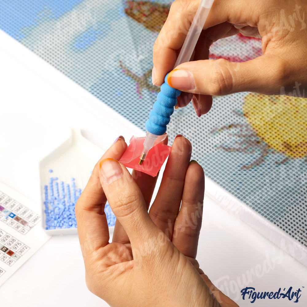 1 stylet adhésif + 2 têtes supplémentaires à diamant (6 et 9 diamants)*