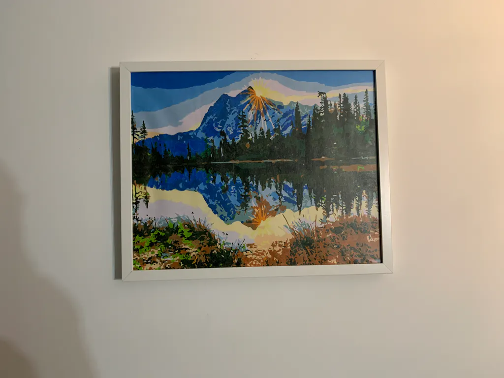 4) Et voilà, Bravo ! Admirez, partagez, accrochez ou encadrez votre œuvre. Par défaut 2 vis et 2 crochets pour la fixation murale sont fournis.