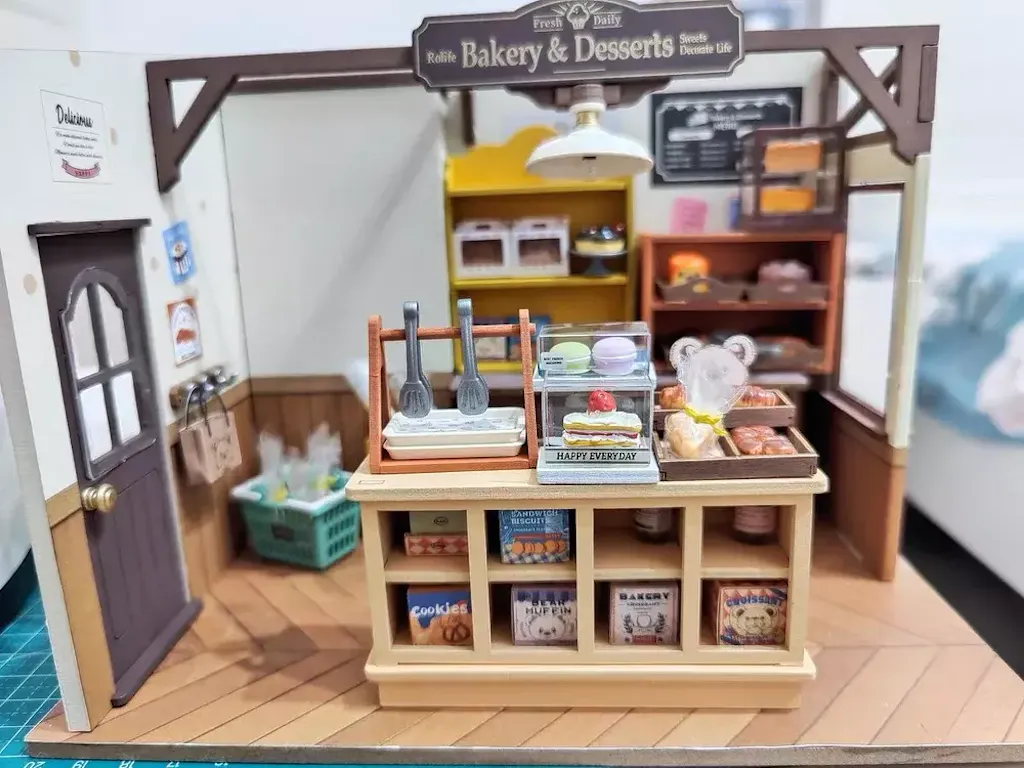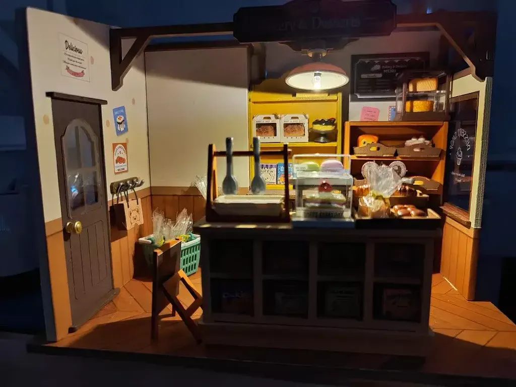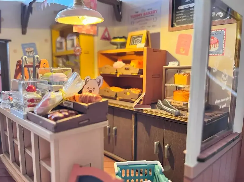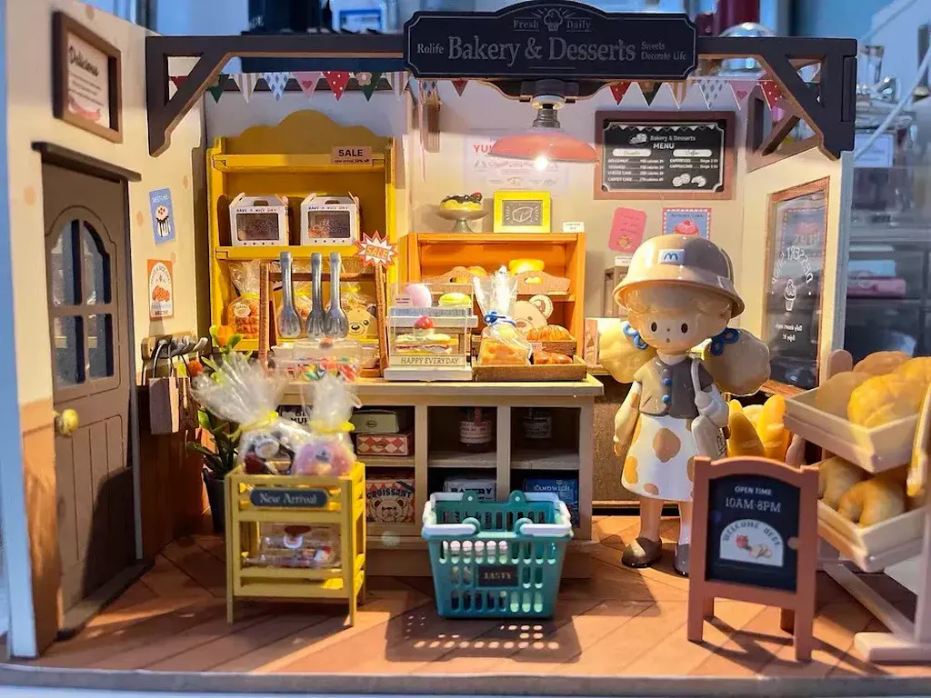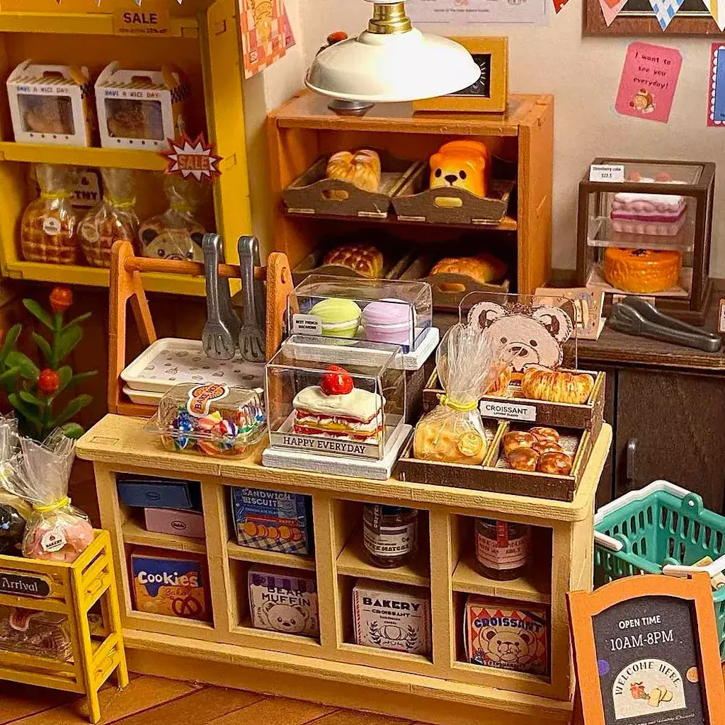 Découvrez cette pâtisserie rétro populaire qui propose une variété de pains, desserts aux formes adorables, et confitures. Cette maison miniature au style vintage est décorée dans des tons de bois originaux, apportant une ambiance chaleureuse et paisible. Construisez ce kit et profitez d'une expérience de bricolage merveilleuse et apaisante.
