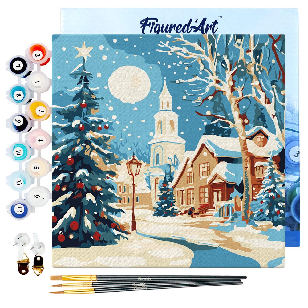 Mini Peinture par Numéros 20x20cm avec cadre Rue de Noël Enneigée