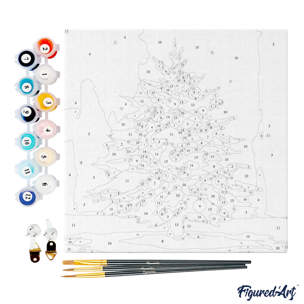 Modèle : Mini Peinture par Numéros 20x20cm avec cadre Sapin de Noël Enneigé