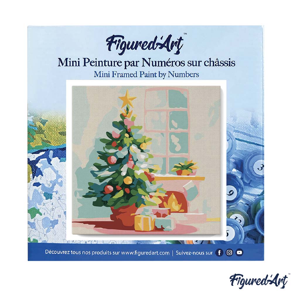 Mini Peinture par Numéros 20x20cm avec cadre Sapin et Cheminée