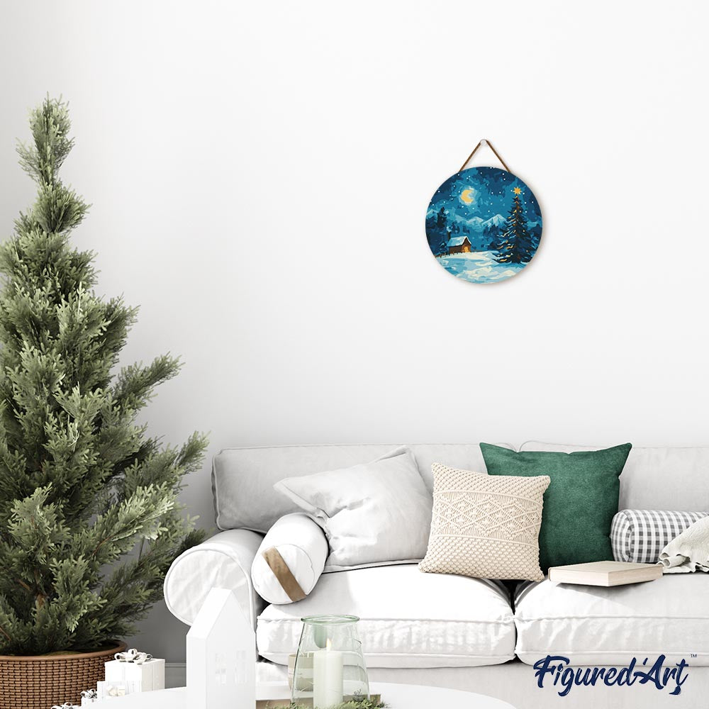 Modèle : Peinture par Numéro sur Disque en Bois - Nuit Étoilée à Noël