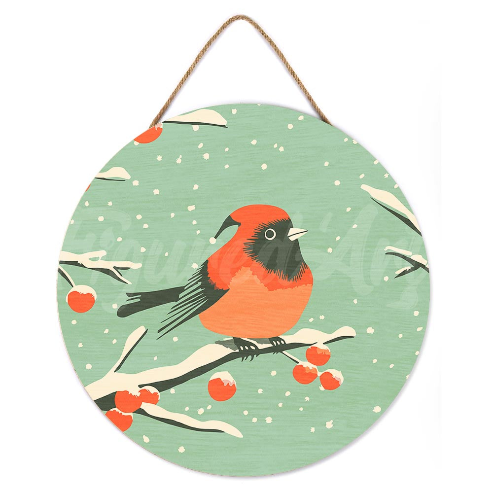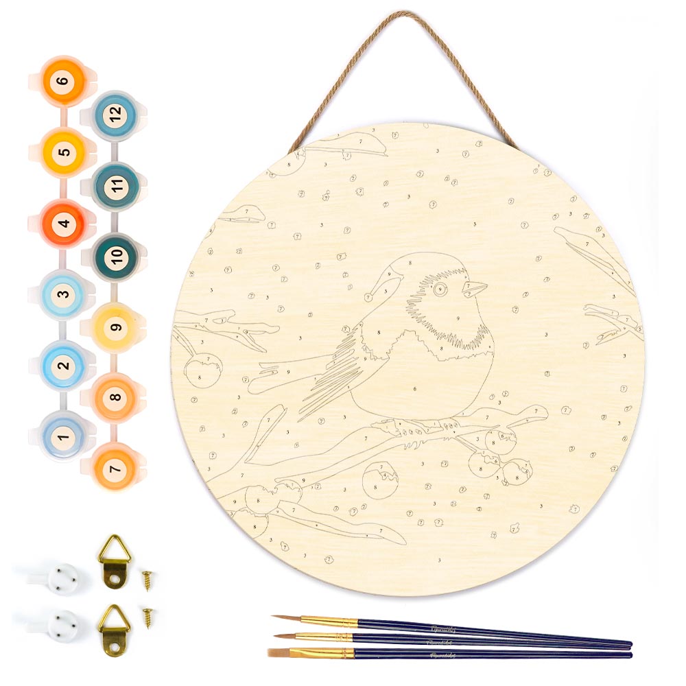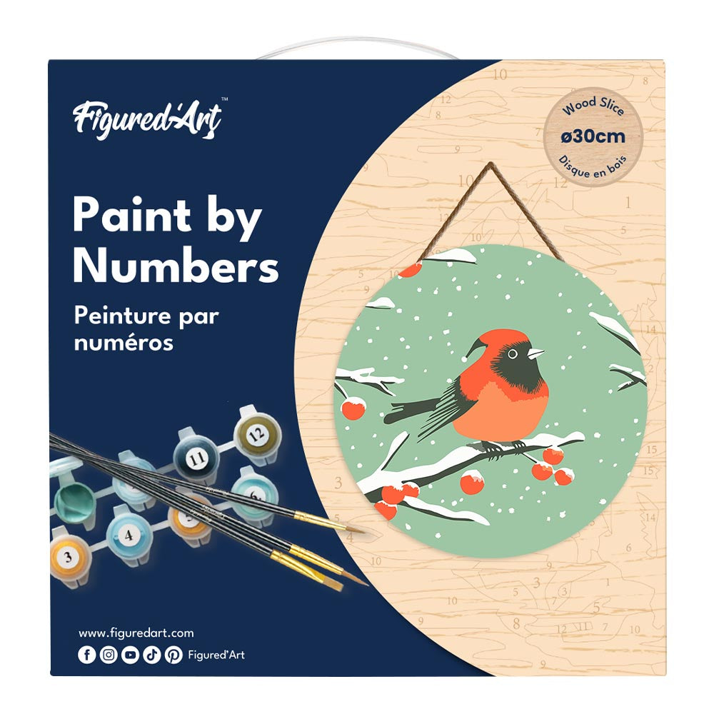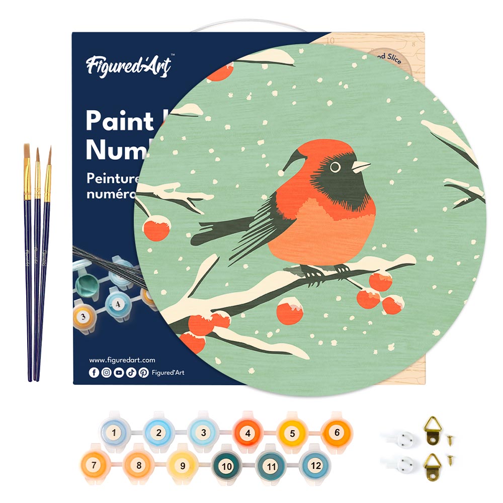 Modèle : Peinture par Numéro sur Disque en Bois - Oiseau Rouge d'Hiver