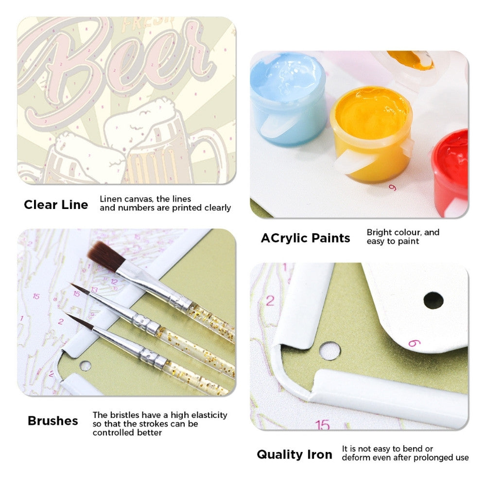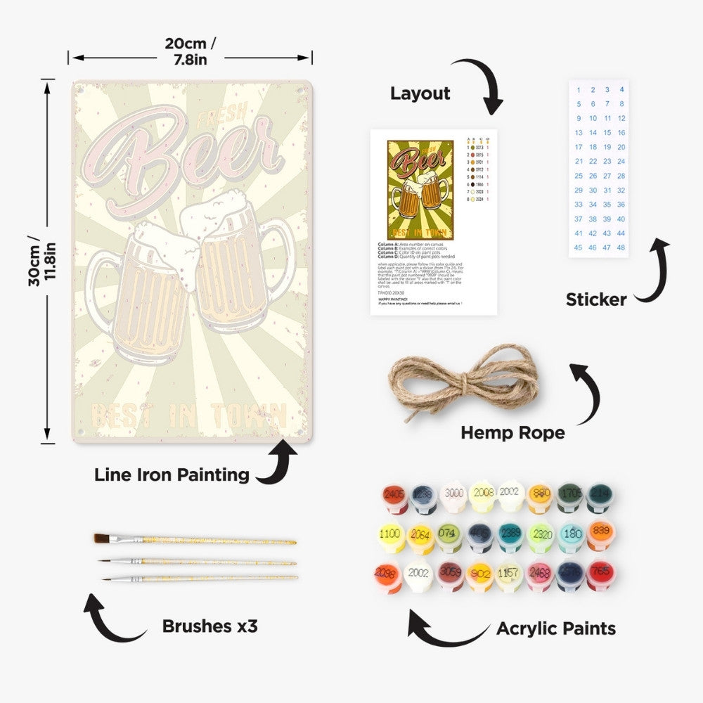 Apportez une touche de charme de pub vintage à votre intérieur avec cette peinture par numéro adulte sur le thème de la bière de Figured'Art. Chaque peinture par numéros sur métal présente un design rétro et soigné qui évoque l'ambiance chaleureuse d'un pub classique. Parfait pour les amateurs de bière et de loisirs créatifs, ce kit peinture offre une façon ludique et relaxante de créer votre propre décoration murale de style pub. Une fois votre œuvre terminée, vous pouvez facilement l'accrocher grâce à la corde en chanvre incluse ou la fixer avec des vis (non incluses). Idéal pour décorer un bar, un pub, un garage, une cuisine ou tout espace convivial. Profitez d'un moment créatif tout en ajoutant une touche de personnalité à votre décoration. 🍺