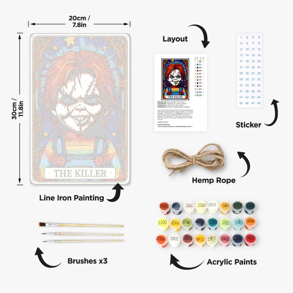 Apportez une touche de charme vintage et mystérieux à votre intérieur avec cette peinture par numéro adulte signée Figured'Art. Chaque peinture par numéros sur métal présente un design rétro inspiré d'Halloween, représentant le Trickster dans une ambiance à la fois effrayante et ludique. Parfait pour les passionnés de loisirs créatifs, ce kit peinture offre une manière amusante et relaxante de créer une décoration murale unique. Une fois votre œuvre terminée, vous pouvez facilement l'accrocher grâce à la corde en chanvre incluse ou la fixer avec des vis (non incluses). Idéale pour ajouter une touche d'originalité à votre salon, chambre ou espace de loisirs. Profitez d'un moment créatif tout en apportant personnalité et charme à votre décoration. 🎃