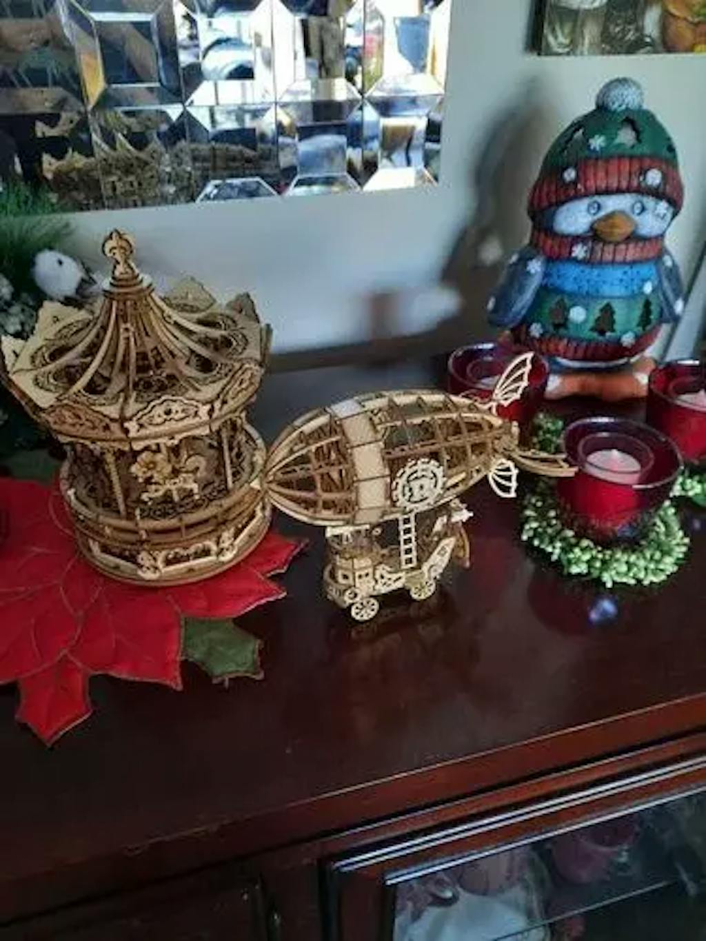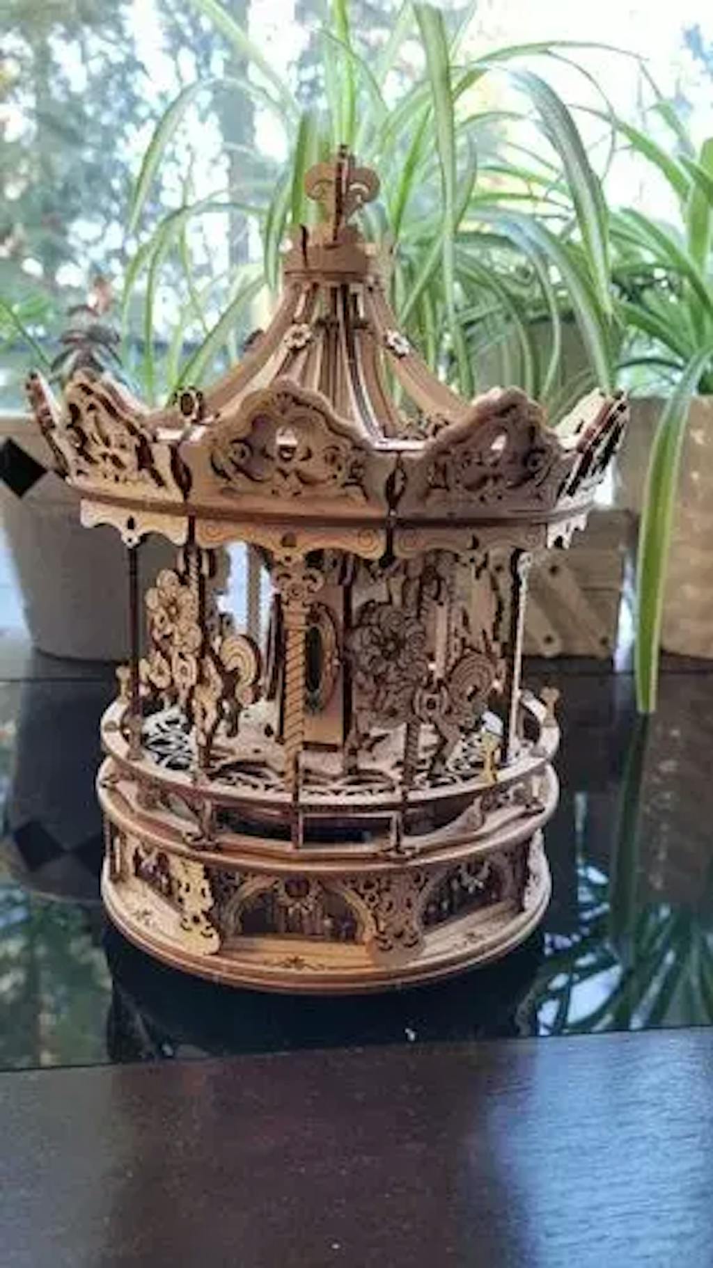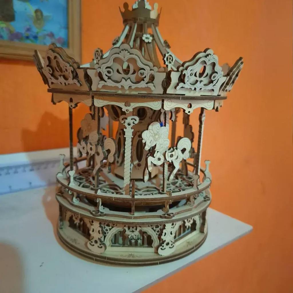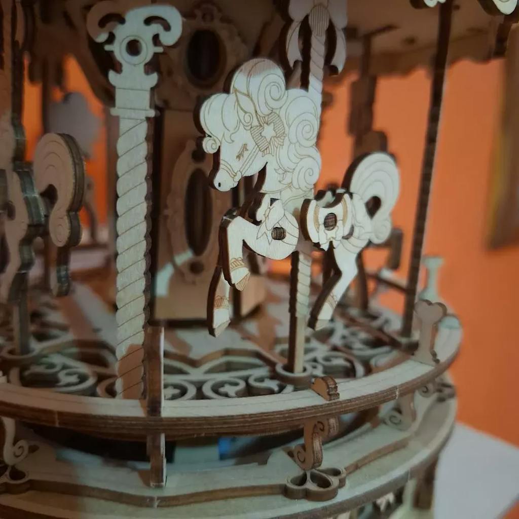 Une parfaite combinaison de carrousel romantique et de puzzle 3D en bois dans une boîte à musique. Construisez-le de vos propres mains et laissez la belle musique et l'atmosphère de rêve vous entourer ! Ce Puzzle 3D en bois est une maquette à construire pour adulte qui représente un véritable mécanisme de manège avec des décorations romantiques et une mélodie envoûtante.