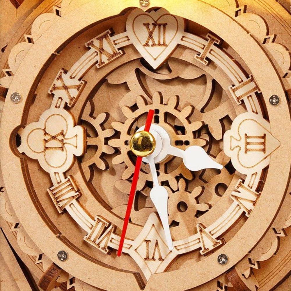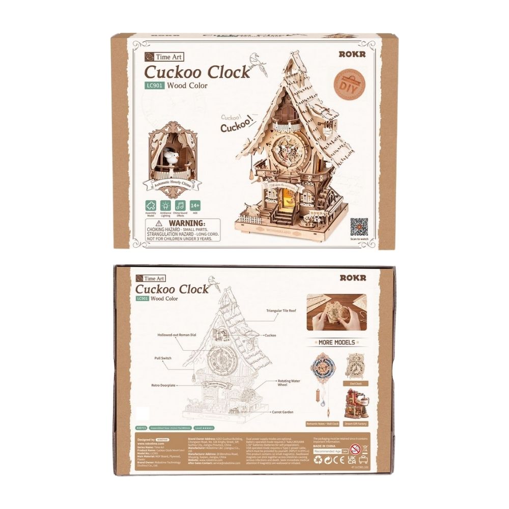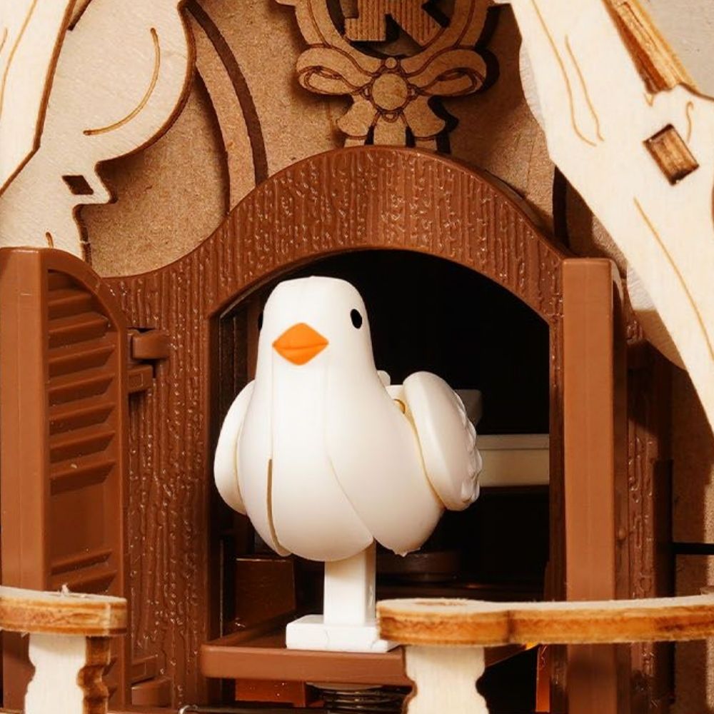 Ce puzzle 3D en bois mécanique vous permet de construire une superbe horloge coucou richement détaillée, inspirée des modèles traditionnels de la Forêt-Noire. Dotée d'engrenages complexes, d'éléments sculptés et d'un charmant coucou qui apparaît lorsque l'horloge fonctionne, elle allie esthétique classique et expérience de montage immersive. Une fois assemblée, l'horloge s'anime grâce à son mouvement fonctionnel, devenant une pièce décorative captivante pour tout intérieur.
