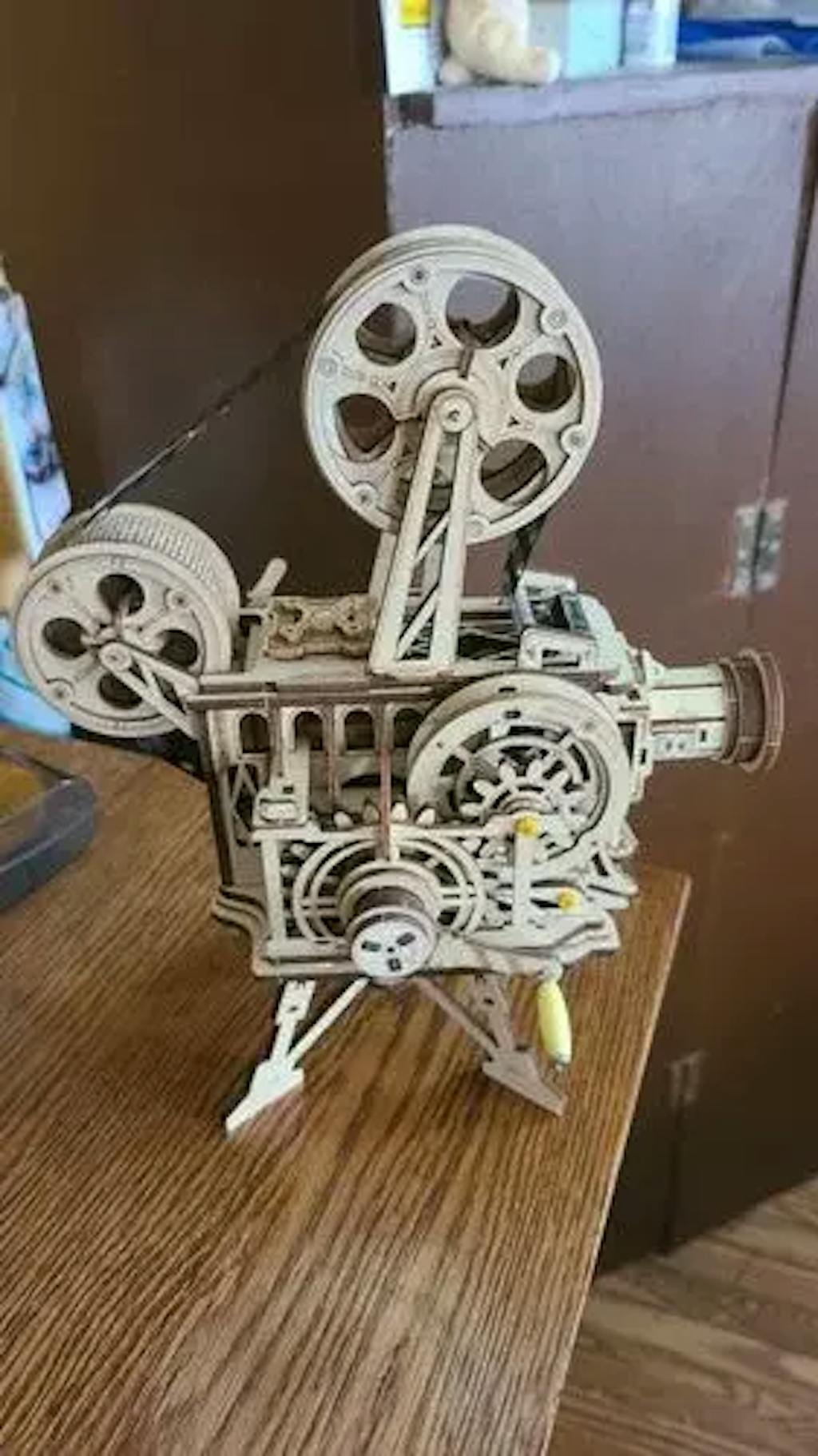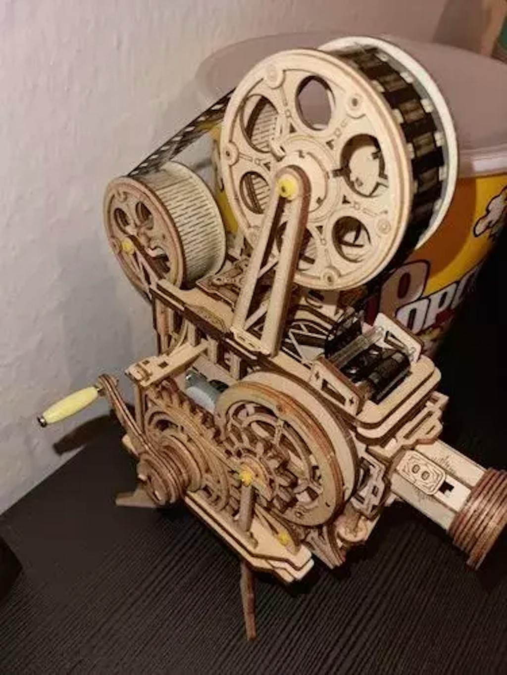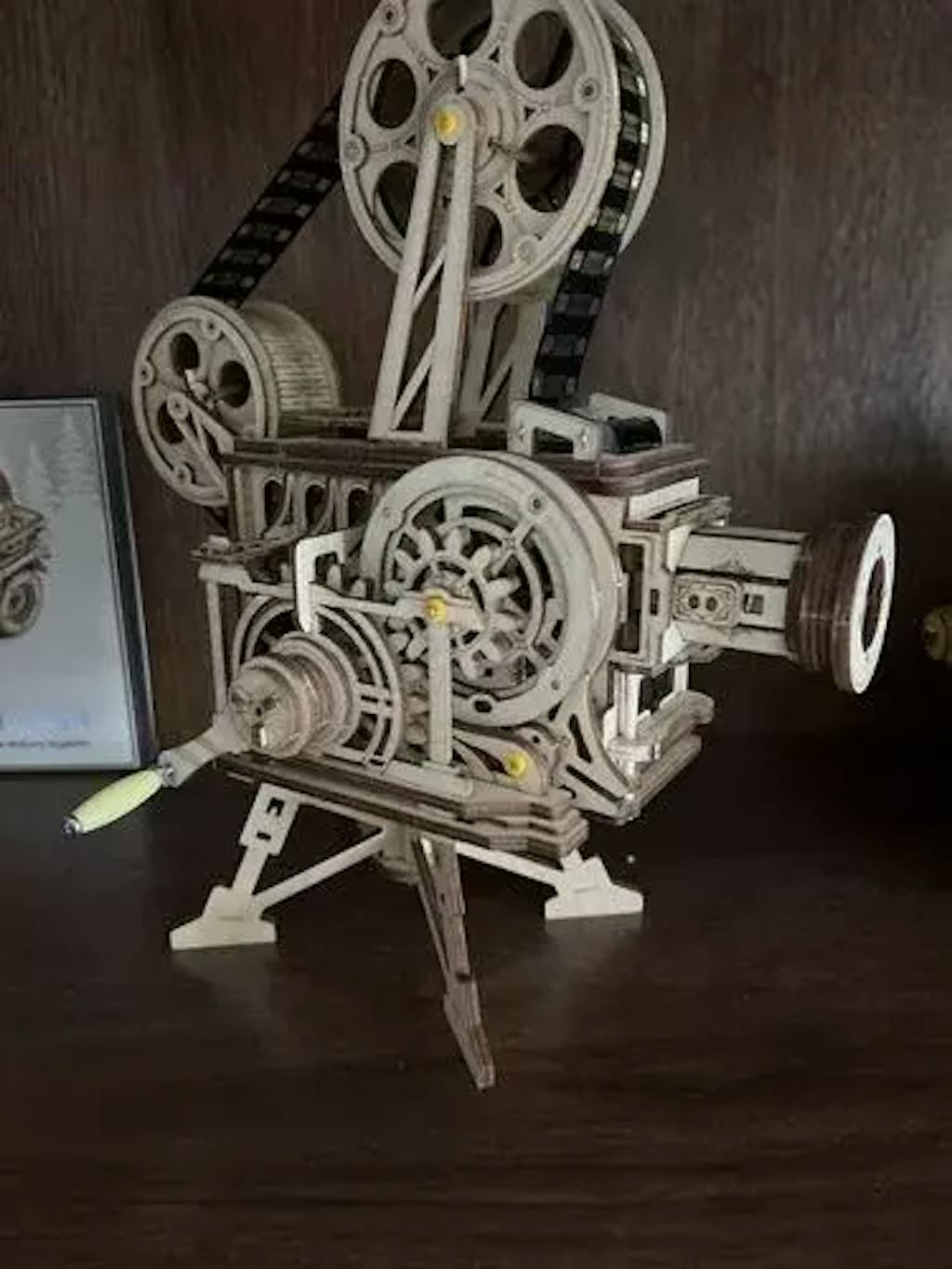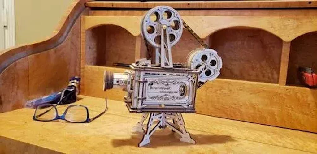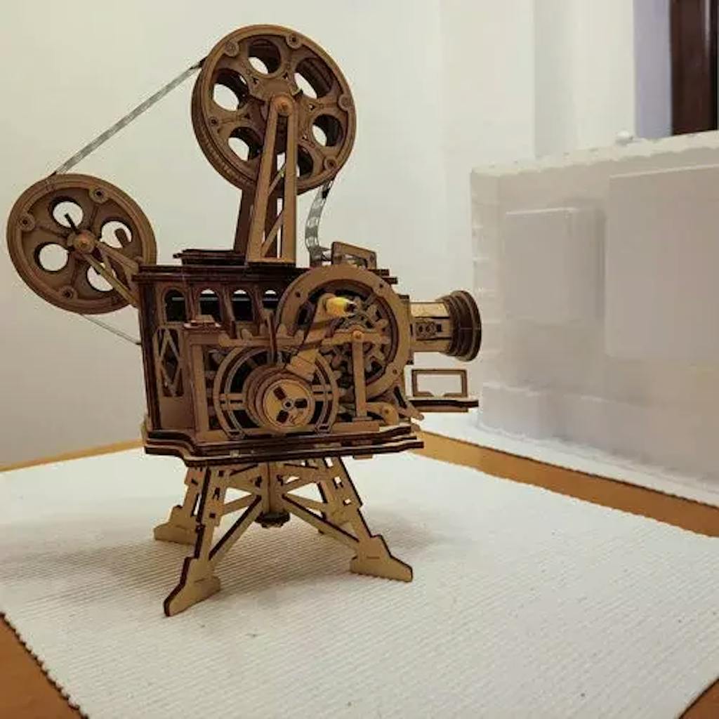Un projecteur de cinéma vintage à assembler vous-même. Ce Puzzle 3D en bois vous permet de créer un projecteur de film authentique. Pas besoin de piles, il suffit de tourner la manivelle pour générer de l'énergie et profiter de films classiques en noir et blanc.