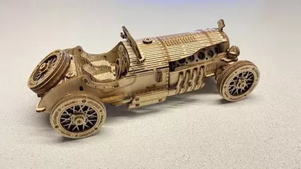 Ce modèle à l'échelle d'une voiture de Grand Prix des années 1910 est un Puzzle 3D en bois qui reproduit une voiture de sport emblématique. Avec des détails réalistes et des structures authentiques, ce puzzle est une maquette à construire pour adulte qui demande patience et dextérité.